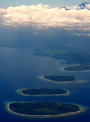 Trois petites îles - Gili Trawangan, Gili Meno et Gili Air - constituent un archipel aux plages de sable blanc et aux eaux limpides.