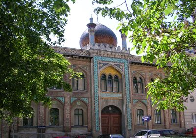 Le bâtiment constitue un exemple rare d'architecture commerciale orientale en Europe, construit entre 1888 et 1892 sous la direction de Karl Mayreder.