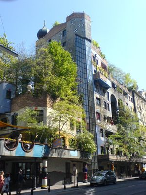 Construit entre 1983 et 1985, les architectes Josef Krawina et Peter Pelikan ont collaboré avec l'artiste Friedensreich Hundertwasser pour créer ce complexe résidentiel de 53 appartements.