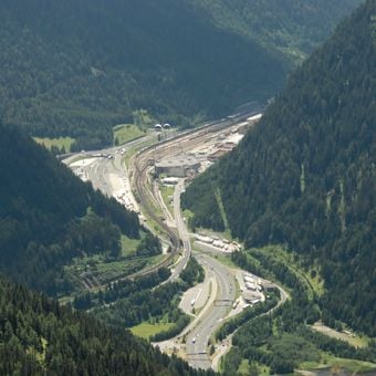 Le Brenner Pass est un col alpin à 1372 mètres d'altitude reliant la région autrichienne du Tyrol à la province italienne du Tyrol du Sud. L'autoroute à quatre voies traverse une large vallée entre des versants boisés, accompagnée d'une route plus ancienne et d'une ligne ferroviaire.