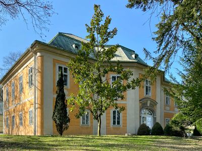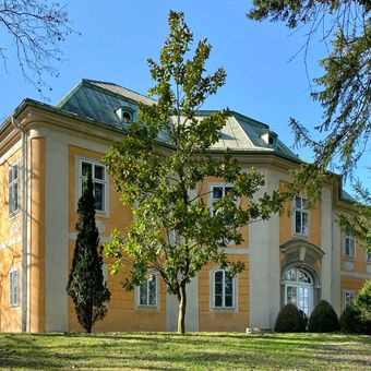 Les jardins du manoir abritent des sculptures Biedermeier représentant Flore et Pan, des statues décoratives de Cérès et une fontaine baroque.