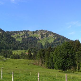 Le sommet Eineguntkopf atteint 1639 mètres d'altitude, formant une frontière naturelle entre le Vorarlberg en Autriche et la Bavière en Allemagne.