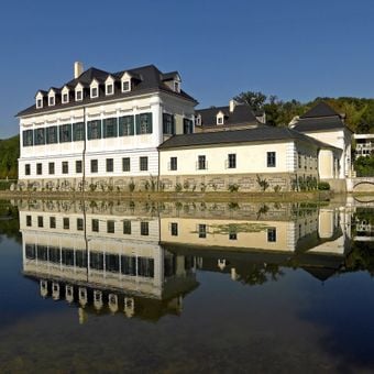 Le château comprend douze salles de réunion, des espaces extérieurs et des éléments de conception traditionnelle entourés d'un fossé au Mauerbachstrasse 43-45 à Vienne.