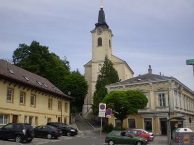 L'église paroissiale de Kalksburg présente une architecture classique avec un tableau d'autel principal représentant la libération de Pierre de la prison.
