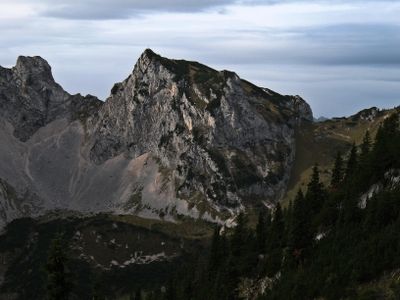 Le Schartschrofen est un sommet montagneux dans les montagnes de Tannheim qui fait partie des Alpes d'Allgäu. Le pic possède une crête rocheuse distinctive et se situe à environ 1.968 mètres d'altitude dans une région populaire pour la randonnée.