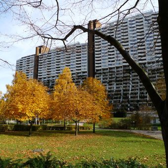 Wohnpark Alterlaa est un ensemble résidentiel dans le sud de Vienne, composé de trois tours d'habitation allant de 23 à 27 étages de hauteur. Les bâtiments présentent une structure en terrasses avec des balcons décalés qui apportent lumière et espace extérieur à chaque étage.