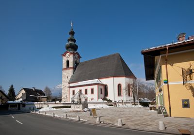 L'église Notre-Dame est un bâtiment gothique avec des arcs pointus, des fenêtres hautes et des murs de pierre typiques de l'architecture religieuse médiévale de la région de Salzbourg. La construction a été achevée vers 1500, et l'intérieur a été complété avec des éléments baroques dans les années 1730.