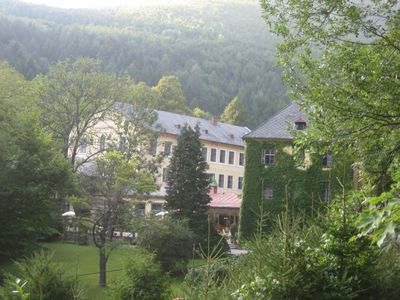 Le Kurhaus Thalhof est un bâtiment classé situé au bout d'une vallée sur les pentes du Rax, entouré de prairies et de forêts. La structure restaurée contient plusieurs étages avec des appartements individuels disponibles pour un séjour.