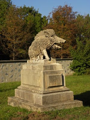 Two boar statues at Pulverstampftor, Denkmalgeschütztes Objekt in Hietzing