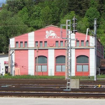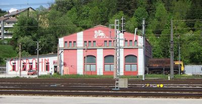 Lokmontierungshalle mit Schiebebühne, Gebäude des Bahnhofs Mürzzuschlag