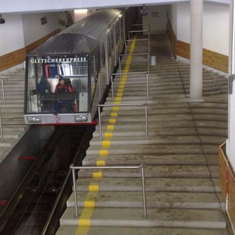 Le Gletscherexpress est un funiculaire qui transporte les visiteurs abruptement vers les montagnes autrichiennes. Le trajet relie une gare inférieure dans la vallée à une gare supérieure en altitude.