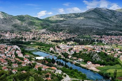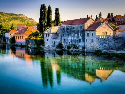 Trebinje est une ville d'Herzégovine, en Bosnie-Herzégovine, située le long de la rivière Trebišnjica et entourée de collines avec des vignobles et des cyprès. La vieille ville s'étend depuis la rive jusqu'aux maisons en pierre et aux ruelles étroites, tandis que les quartiers plus récents se déploient le long des routes principales.