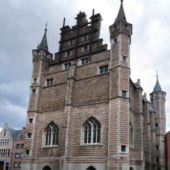 Vleeshuis est un grand édifice corporatif aux murs de brique rouge et aux assises de pierre de taille blanche qui les traversent, couronné de tours octogonales aux angles. À l'intérieur, deux salles spacieuses présentent des objets en bronze, des céramiques et des instruments de musique historiques du passé d'Anvers.