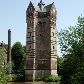 Le Donjon Ter Heyden est une tour défensive médiévale d'environ 30 mètres de haut avec six niveaux reliés par un escalier en colimaçon et des murs en brique et grès locaux. Sa construction solide montre comment les bâtiments fortifiés étaient conçus pour résister aux attaques au Moyen Âge.
