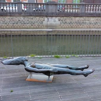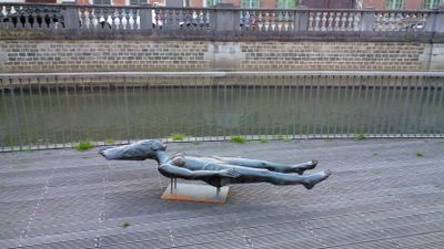 La statue représente une figure féminine allongée placée dans une fontaine à l'intersection des rues Tiensestraat et Muntstraat à Louvain.