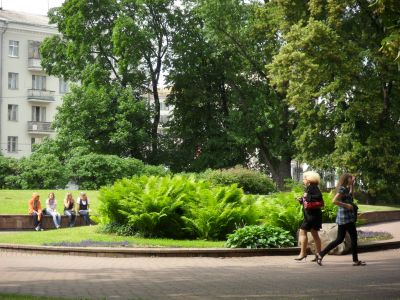 La Place Mikhailovsky est une place jardinée au centre de Minsk avec des allées pavées, des zones de repos et des parterres de fleurs distribués dans l'espace. Le lieu s'étend entre plusieurs rues et propose une zone verte organisée avec des plantations régulières.