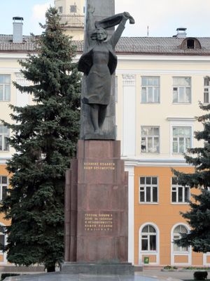 Memorial to fallen Komsomol members in Homieĺ, Monument en bronze dans le quartier Tsentralny, Homieĺ, Biélorussie.