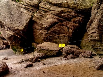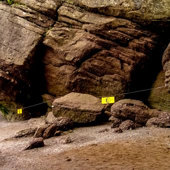 Les formations rocheuses émergent du fond marin, atteignant 12 mètres de hauteur le long du rivage de la Baie de Fundy.
