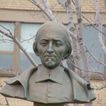 Le Site du Collège de Caraquet présente un monument commémoratif avec un buste de Saint Jean-Eudes monté sur une base en pierre originale du collège.