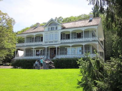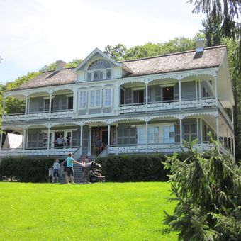 Le domaine de 136 hectares comprend des parcs paysagers, des jardins spécialisés et une résidence aux grandes fenêtres surplombant le fleuve Saint-Laurent.