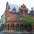 L'ancien édifice bancaire sert maintenant de café et d'espace de bureaux, conservant ses caractéristiques extérieures d'origine.