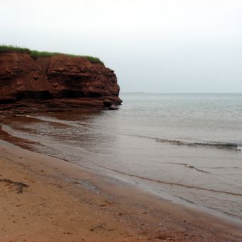 Le parc provincial Cabot Beach s'étend le long des rives de la baie de Malpeque, présentant des formations de grès rouge et de grandes plages.