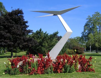 Une plaque commémorative dans le parc documente la transformation de Bluebell Farm en premier aérodrome de Halifax avec deux pistes en herbe.