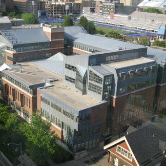 L'École de gestion Rotman occupe trois bâtiments reliés présentant des éléments architecturaux victoriens et modernes dans le quartier universitaire de Toronto.