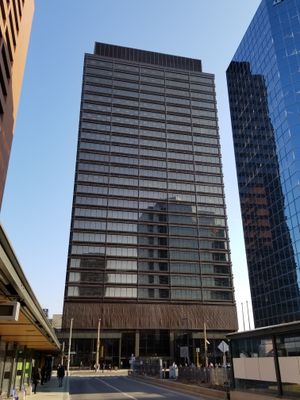 Construit en 1972 sous le nom de Tour Stelco, cet immeuble servait de siège au plus grand producteur d'acier du Canada.