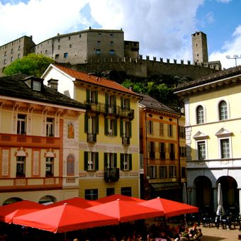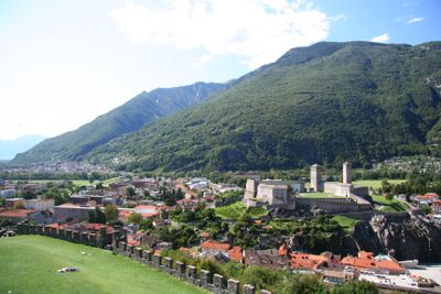 Cette ville fortifiée se trouve au point de rencontre de trois vallées alpines dans le canton méridional du Tessin, où trois châteaux gardent la route de passage au-dessus du fleuve. La vieille ville s'étend entre les collines et montre des rues pavées, des places à arcades et des maisons en pierre qui montent jusqu'aux murs du château.