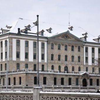 L'ancien couvent d'Oetenbach s'élève sur la rive ouest de la rivière Limmat, servant aujourd'hui de quartier général au département de police.