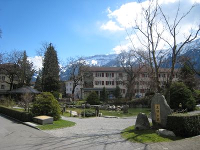 Les pierres du jardin proviennent de deux sources différentes: certaines ont été apportées d'Otsu au début des années 1990, tandis que d'autres ont été extraites localement autour d'Interlaken. Ce mélange en fait un lieu ou on retrouve littéralement les deux régions dans ses fondations.