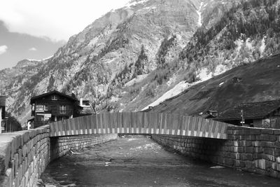 Le Valserrheinbrücke traverse la rivière Valser Rhein avec une structure en béton armé ornée d'épaisses dalles de gneiss de Vals à 1252 mètres d'altitude.
