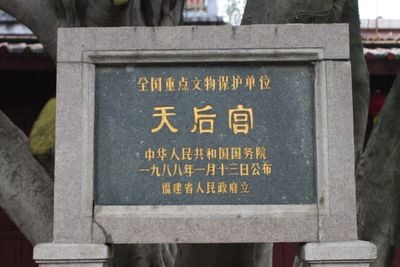 Tian Hou Gong est un temple en pierre à Quanzhou dédié à Mazu, déesse de la mer, et affiche l'architecture chinoise traditionnelle avec des sculptures élaborées. La structure contient des espaces pour les offrandes, des halls d'adoration et des cours conçus pour accueillir les prières quotidiennes et les grandes cérémonies.