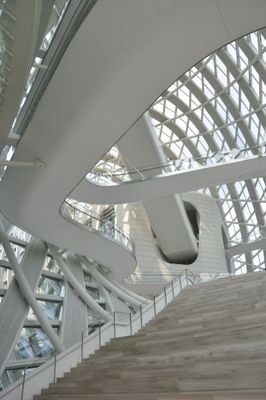 Le bâtiment intègre des systèmes de ventilation naturelle grâce à des espaces coniques de 30 mètres de hauteur qui créent une circulation d'air.