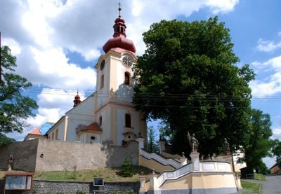 L'église Saint-Venceslas est un lieu de culte à Chlum construit avec des murs en pierre et des éléments architecturaux gothiques. Le bâtiment occupe un terrain surélevé qui offre des vues sur la campagne environnante de Bohême centrale.