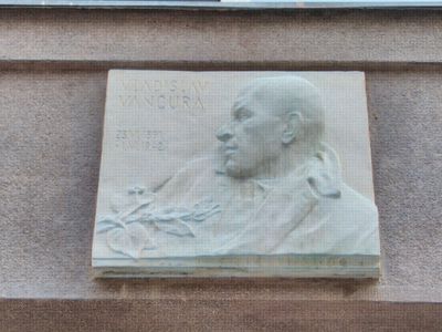 Pamětění deska Josefa Voříška na Paláci Merkur v Praze