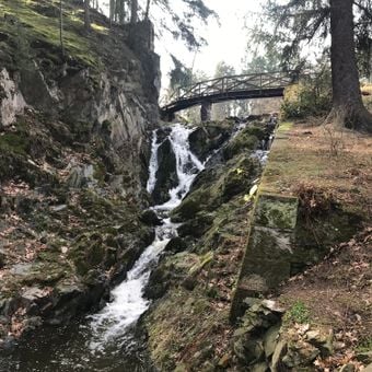 Most přes Botič v průhonickém parku jihozápadně od glorietu