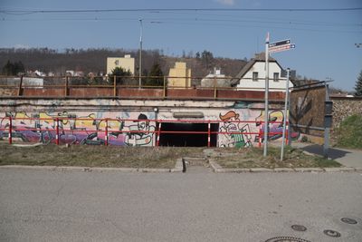 Podchod pod železnicí u skateparku v Radotíně, podchod pod tratí Praha - Beroun z ulice Ke Zděři k domku U starého stadiónu 384/15 u skateparku v Praze-Radotíně