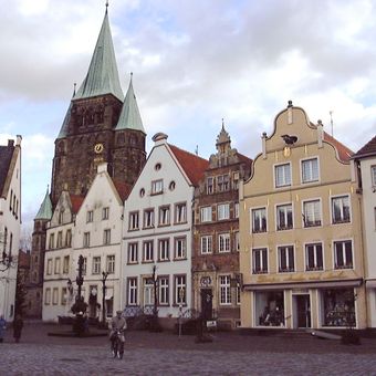 La ville s'étend le long de la rivière Ems, présentant une architecture médiévale avec des maisons à colombages autour de la place du marché.