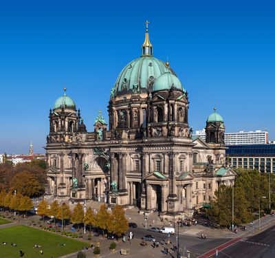 La Cathédrale de Berlin s'étend sur 90 mètres de long et 74 mètres de large, avec un dôme central qui s'élève à 98 mètres de hauteur.