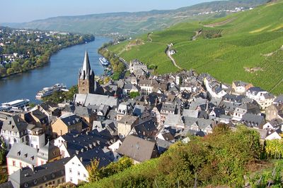 Cette ville jumelle est située le long de la Moselle entre Trèves et Cochem, entourée de vignobles escarpés et d'architecture médiévale à 110 mètres d'altitude.