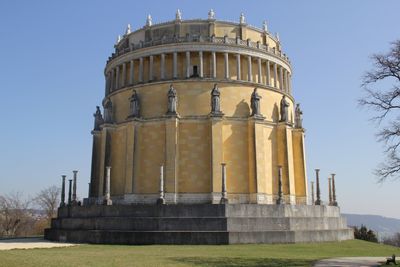 Le Befreiungshalle circulaire s'élève à 45 mètres avec un diamètre de 29 mètres, présentant 18 piliers extérieurs ornés de statues des tribus allemandes.