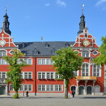 Le quartier central présente des zones piétonnes reliant la Liebfrauenkirche, l'Hôtel de Ville Renaissance et le Palais Monplaisir du XVIIIe siècle.