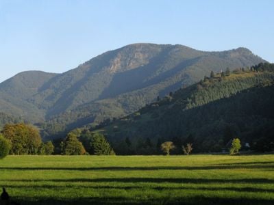 Le mont Belchen atteint 1414 mètres d'altitude et présente des forêts sur les versants nord et des prairies sur les faces sud.