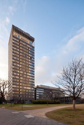 La structure a été achevée en 1965 selon les plans de Sep Ruf et était le plus haut bâtiment de Francfort au moment de son achèvement. Elle a marqué un tournant dans le développement architectural de la ville et fixé de nouvelles normes.