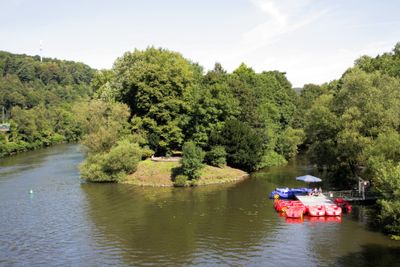 Brehminsel se situe à l'intersection de la rivière Ruhr, créant un espace vert naturel entouré par les eaux courantes.