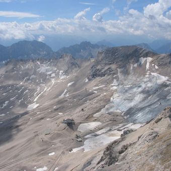 Le Schneeferner est un glacier sur le Zugspitze en Allemagne et se situe à environ 2580 mètres d'altitude entre les pentes rocheuses de la montagne. Les surfaces de glace s'étendent sur deux zones séparées et sont entourées de parois rocheuses abruptes et de champs d'éboulis.