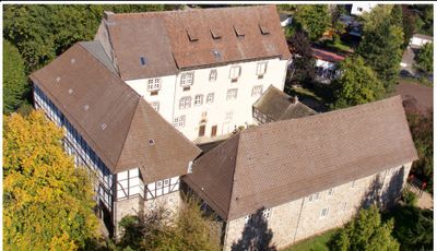 Burg Aerzen est une fortification en pierre et bois situee sur un terrain eleve au nord de Hannover pres de Hamelin, avec un plan rectangulaire et plusieurs ailes connectees. Les batiments presentent des traits de differentes epoques, rendant visible leur longue evolution.