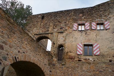 Le complexe fortifié était divisé en quatre sections bâtiments indépendants, avec des parties actuellement intégrées dans des structures résidentielles modernes autour du site. Ce mélange de ruines anciennes et de bâtiments contemporains est clairement visible lors d'une visite.